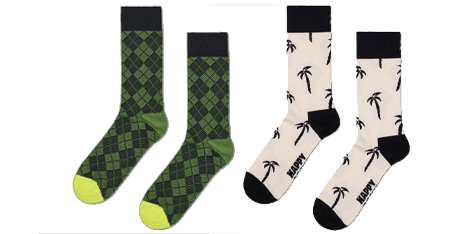 2 par Happy Socks® strl 41-46. Coola Palm Tree Sock och ett par klassiskt snygga gröna Argyle Sock, 1 Trisslott från Svenska Spel i presentkuvert, Karl Fazer mjölkchoklad 2x39g och 4 st Dumlekolor.