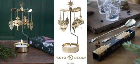Änglaspelet ORNAMENTS från Pluto Design. Klassiskt änglaspel där eleganta julkulor snurrar i takt med lågan. En stämningsfull dekoration med retroinspirerad känsla. En dekorativ liten tändsticksask med stora tändstickor. Geisha 37g, Polly 34g, 2 tomtepraliner med crisp. 2 Sandwich Pepparkaka.